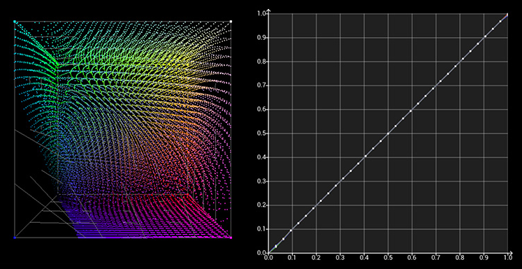 The resulting LUT will have the 1D grey scale component nullified from the full 3D LUT, not just deleting the grey scale points as that is not the correct process required. The entire 1D component must be removed from the full volumetric 3D LUT, as can be seen below.