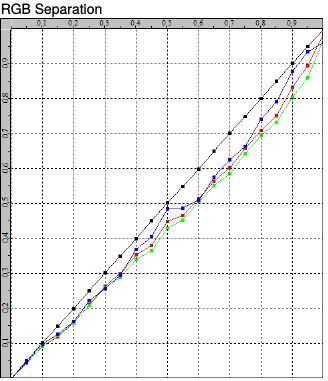 IMHO (all), the blue is the dominating color and it could be some clipping over 90, also this calibration is visually the best, I think it is for the low deltas (for almost) and the cold tone. The diff gamma is typical of this TV, the only I got a near flat gamma was using the 20 point grayscale of the Lumagen but the image look much dimmer. One thing, I was surprised, the image look more luminous than a Calibration made with the Lumagen with a similar max luminosity.