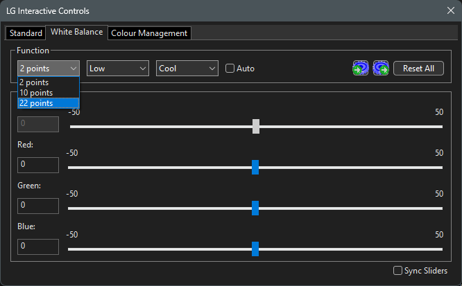 The Sync Sliders option will sync the RGB sliders the the first slider selected to enable Luminance adjustments to be have via the RGB values rather than the independent Luminance slider.